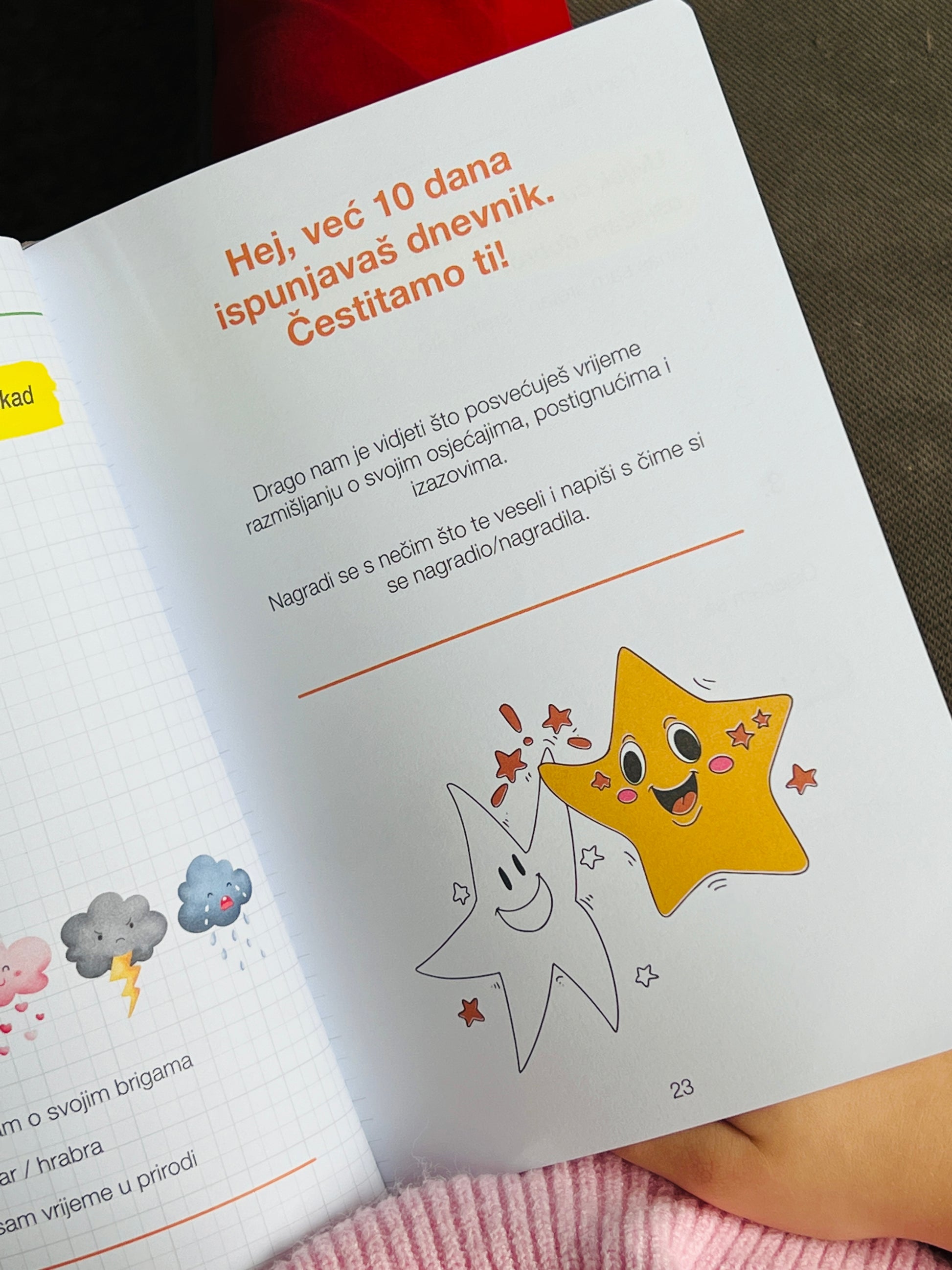 Moj mali dnevnik je puno više od bilježenja svakodnevnih događaja. On je alat koji potiče vaše dijete da razmišlja o svakodnevici, osjećajima i vježba zahvalnost za velike i male stvari u životu. Vama služi kao most koji vam pomaže da s djetetom stvorite duboku emocionalnu vezu i odnos pun ljubavi i razumijevanja.